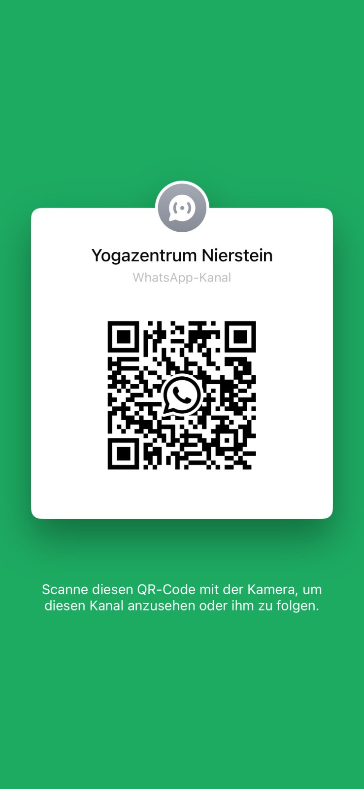 Mit dem QR-Code den WhatsApp-Kanal vom Yogazentrum Nierstein abonnieren: